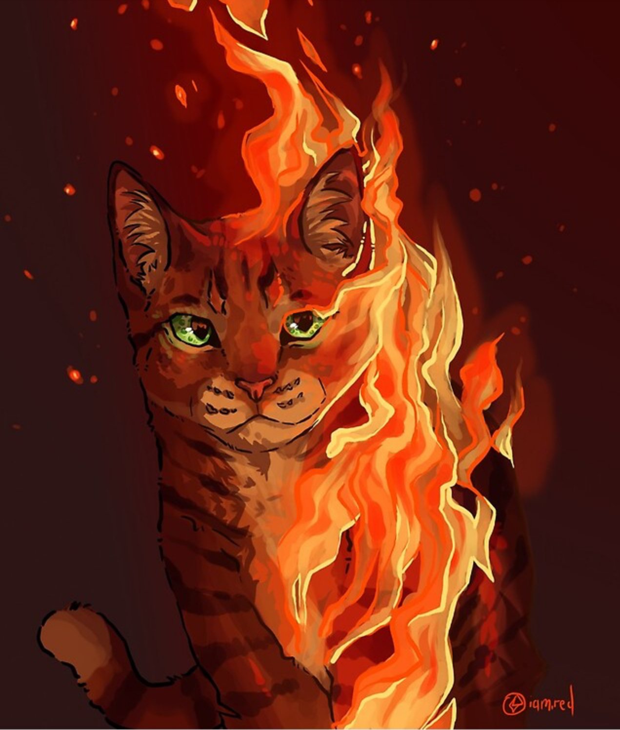 Étoile de Feu, personnage central de la saga La Guerre des Clans, possède un pelage roux flamboyant et des yeux vert vif, caractéristiques qui lui ont valu son nom. C'est un chat de taille plutôt large mais élancé, au poil épais et court, avec le ventre d’une teinte plus pâle.